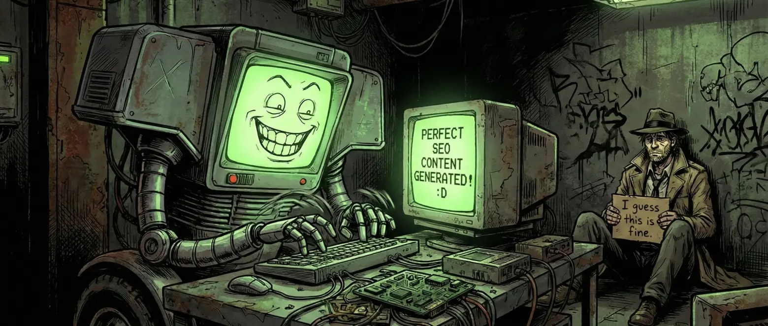 Those signals show up fast. The structure is just too good. Balanced paragraphs, a clear introduction, organized development, a predictable conclusion. A text built to perform well: SEO, headings, keywords nicely distributed, and that strategic separation (which annoys me) with --- between h2s. Because every “well-written” article needs a visual pause.